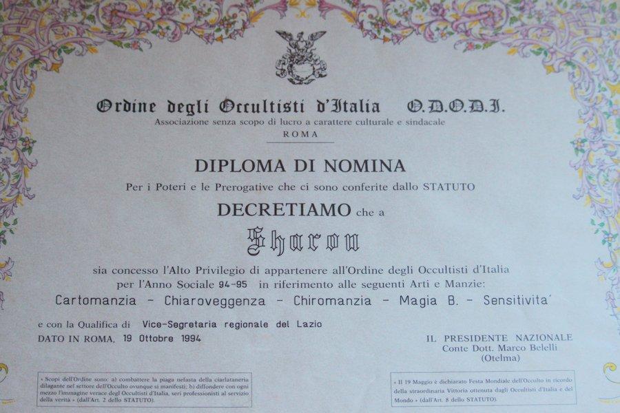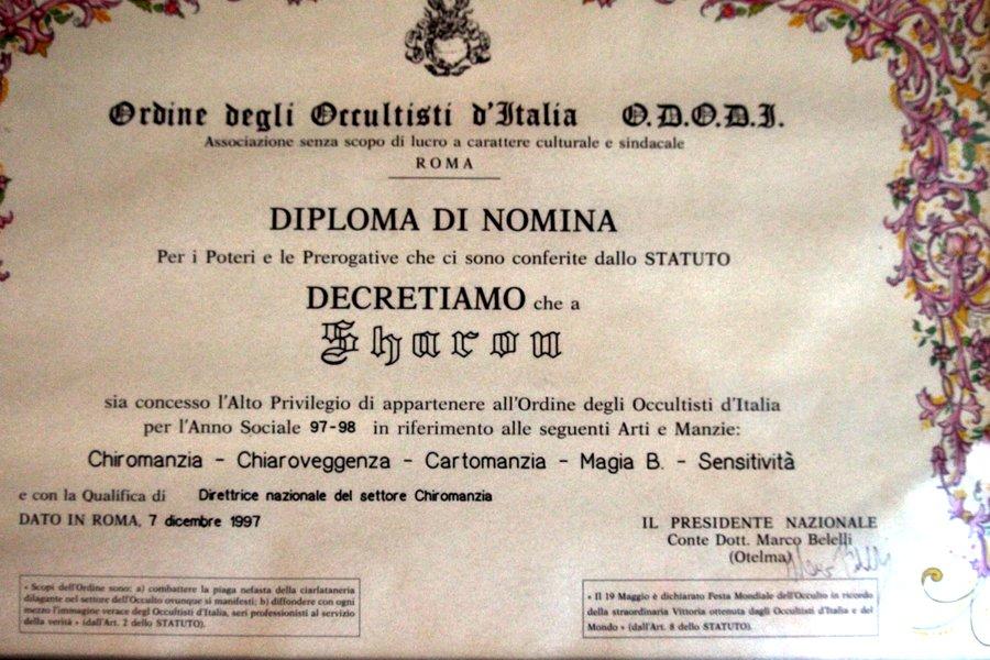 Attestati | Sharon Sensitiva Sensitività Chiaroveggenza